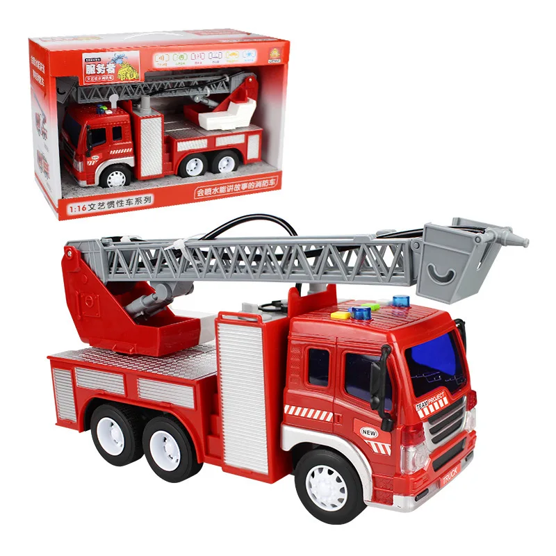 Large children's fire truck toys spray water fire ladder car light music story sprinkler inertia im