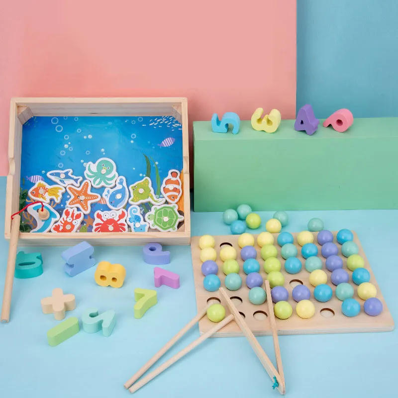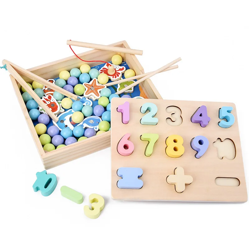Best 3-in-1 Children Wooden Montessori material Jigsaw puzzle letters Toy Count Arithmetic Magnetic Fish