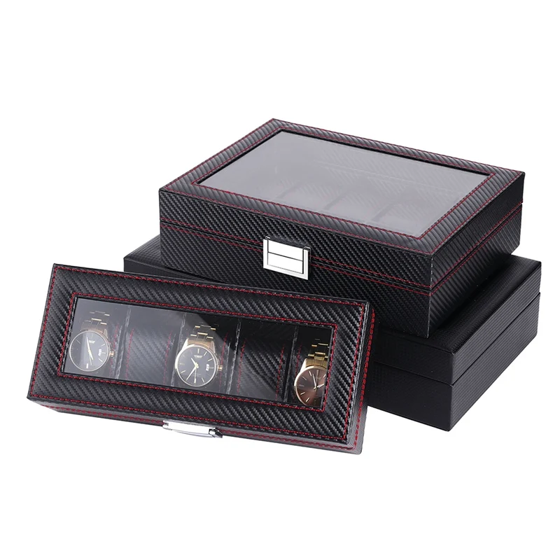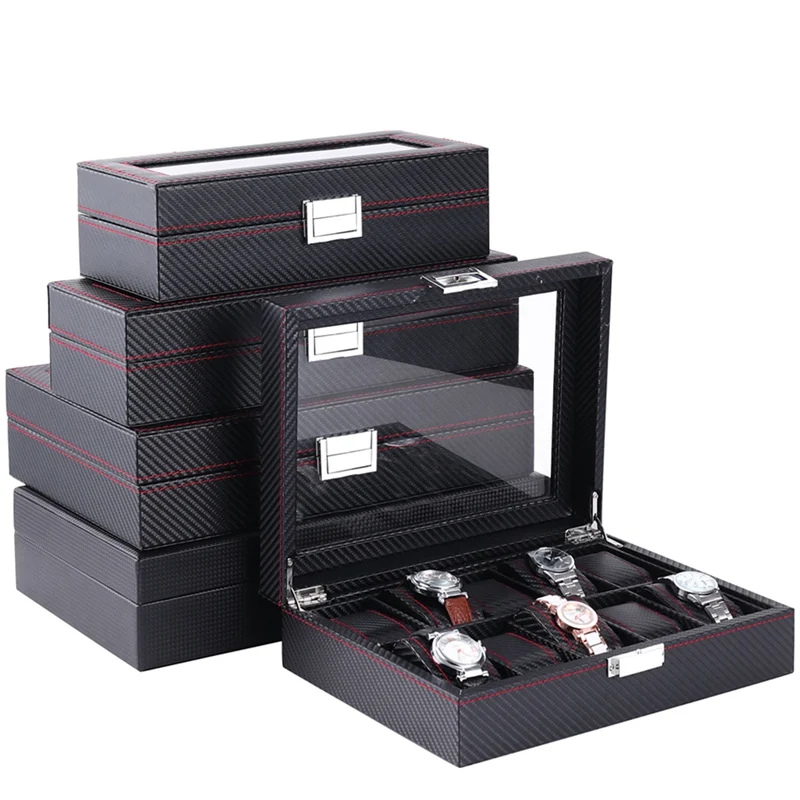 HOT Sale 5 6 10 12 Slot / Grid Watch Box Carbon Fiber Leather Wood Display Container Storage Holder Travel O